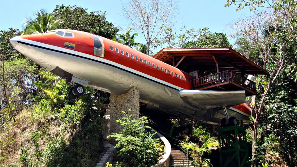 Ubicada en la localidad de Manuel Antonio, Provincia de Puntarenas, en la selva de Costa Rica, se encuentra esta vivienda: un Boeing 727 que en su vida anterior transportaba turistas en South Africa Air y Avianca Airlines. El alojamiento ofrece vistas al mar y a la vegetación que hacen sentir al huésped como si estuviera volando.
