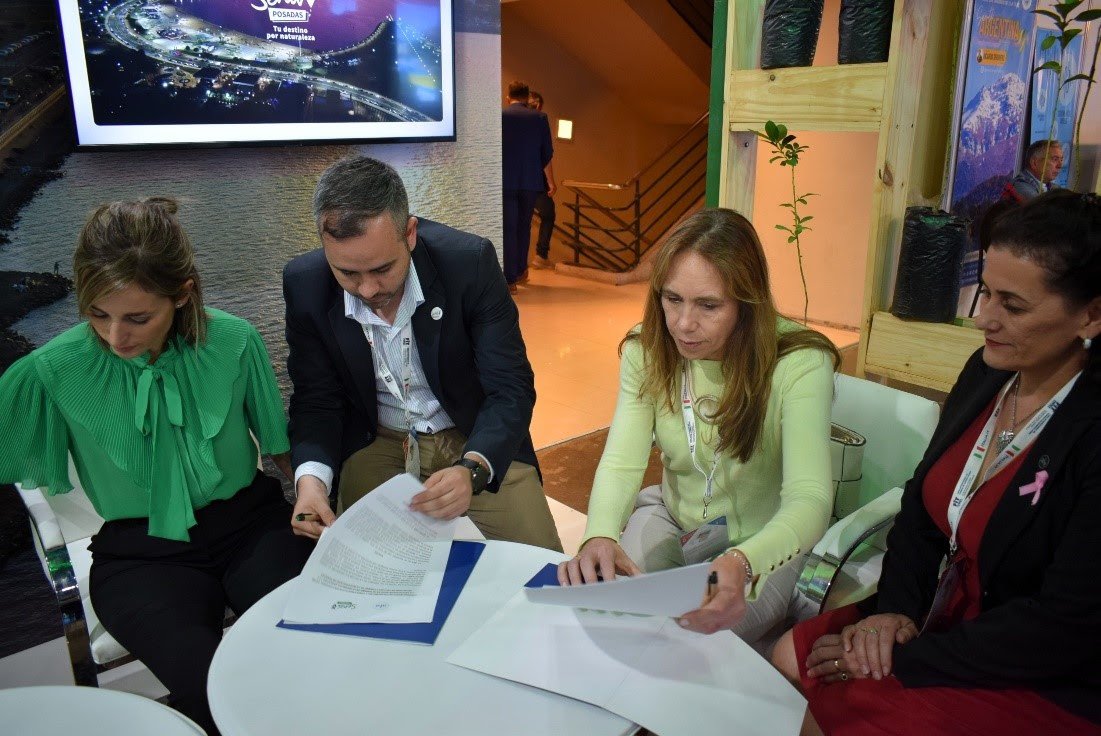 Firma de convenio con la Ciudad de Posadas: el norte de este convenio es generar el compromiso de cooperación en orden a la promoción de proyectos de Sustentabilidad Hotelera y asistencia técnica entre la entidad y la secretaría de turismo de Posadas, a través de los cuales se faciliten herramientas de gestión en materia de Hotelería Sustentable.