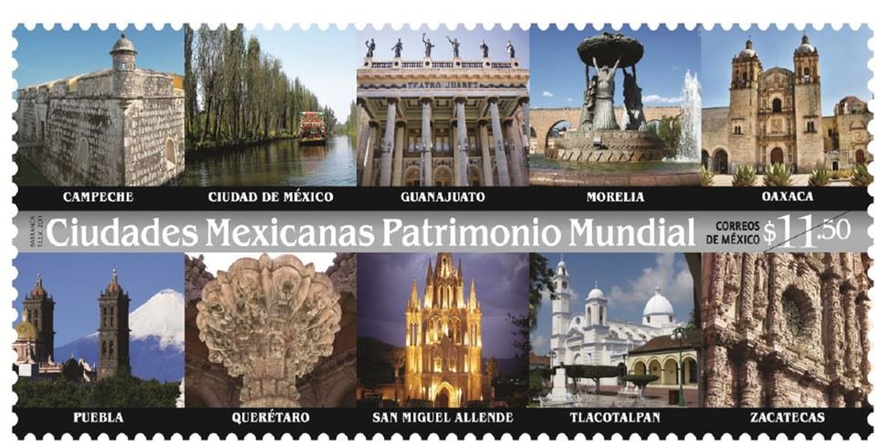 La UNESCO y la Asociación Nacional de Ciudades Méxicanas del Patrimonio Mundial (ANCMPM) junto con Correos de México, emitieron una estampilla postal con las fotografias de las 10 ciiudades mexicanas del patrimonio mundial con el fin de darle realce a estas ciudades y su patrimonio conservado.