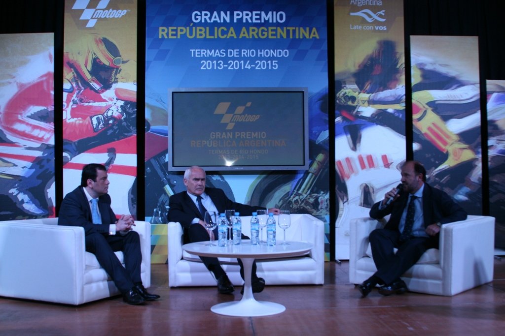 El Gran Premio República Argentina 2013 de MotoGP fue presentado ayer en el Museo del Bicentenario, en un acto en el que participaron el ministro de Turismo de la Nación y presidente del Instituto Nacional de Promoción Turística, Enrique Meyer; el gobernador de Santiago del Estero, Gerardo Zamora; el secretario ejecutivo del (INPROTUR), Leonardo Boto; el presidente de Dorna, la empresa organizadora de la competencia, Enrique Aldama; el piloto italiano del continental circus, Andrea Dovizioso, y el ex motociclista argentino, Sebastián Porto.