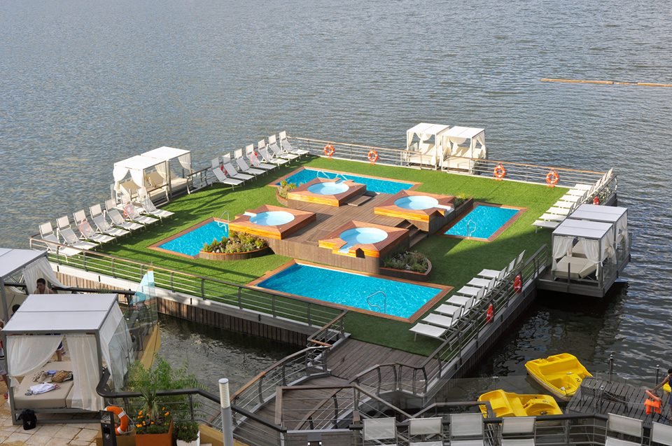 El ingenio puntano fue el artífice de esta construcción “El complejo cuenta con refrescantes Piscinas Flotantes, una obra de características únicas en el país, con mano de obra de la provincia e insumos y materiales comprados a proveedores de San Luis. Se hallan sobre una plataforma de 400 m2, que incluye cuatro piscinas rectangulares con playas húmedas, hidrojets y contornos de madera deck. Dos de ellas son totalmente climatizadas. Además, nuestros huéspedes se relajan en cualquiera de los cuatro solariums redondos con cascada de cortinas de agua e hidromasajes interiores”, comentó Leonardo Agnesi, gerente del Hotel Potrero de los Funes. .