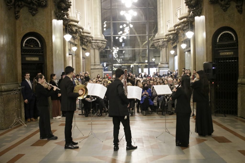 El inicio del ciclo cultural “Eventos del Centenario”, organizado por la Fundación “Los Amigos del Palacio Barolo”, estuvo a cargo de una majestuosa presentación del Ensamble de Vientos de la Academia Orquestal del Instituto Superior de Arte del Teatro Colón.