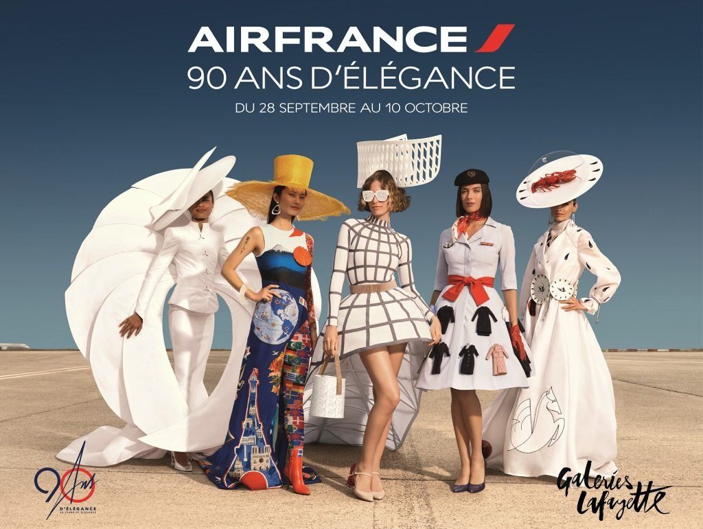 A lo largo de este período de aniversario, Air France ofrece a los visitantes la oportunidad de asistir a auténticos desfiles de moda que retratan 90 años de elegancia francesa, junto con Galeries Lafayette. Modelos vestidos con los uniformes de pilotos, tripulación de cabina, personal de aeropuerto y mecánicos estarán en exhibición en un área dedicada de la tienda para repasar el legendario patrimonio de uniformes de la compañía, pasado y presente. Desde los primeros atuendos de «barman» hasta piezas de alta costura firmadas por los más grandes diseñadores como Christian Dior, Cristóbal Balenciaga y Christian Lacroix, el desfile de moda es un viaje único a través de los estilos de las diferentes épocas fundacionales de Air France.