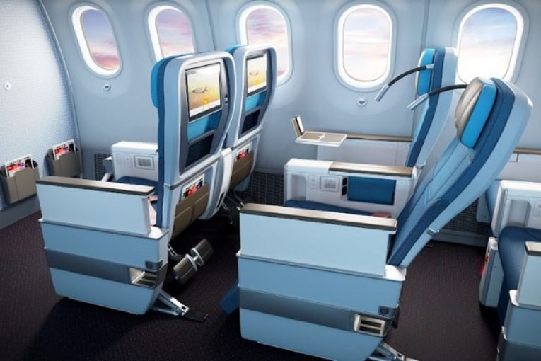 Los nuevos asientos de Premium Comfort Class fueron diseñados por Collins Aerospace, junto con especialistas de KLM Customer Experience. Además de tener un elegante diseño y características de confort, los asientos son más ligeros que los diseños anteriores.