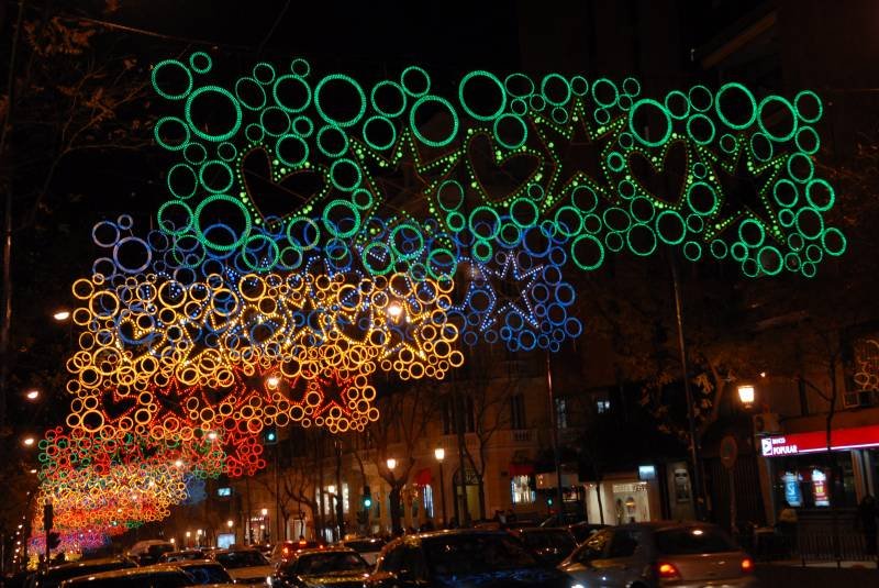 Madrileños y visitantes se encuentran con una ciudad que se viste de luz y diseño para la ocasión. La iluminación, que cumple con requisitos de respeto al medio ambiente y eficiencia energética, se convirtió en uno de sus principales atractivos. En esta ocasión, las luces se han focalizado en los ejes comerciales de la ciudad. Más de 45 espacios de la ciudad están iluminados. Todo un espectáculo de luz y color, que se completa con la iluminación de algunos iconos y edificios de la ciudad, como por ejemplo la sede del Ayuntamiento y la fuente Cibeles, que este año se teñirán de rojo y verde.