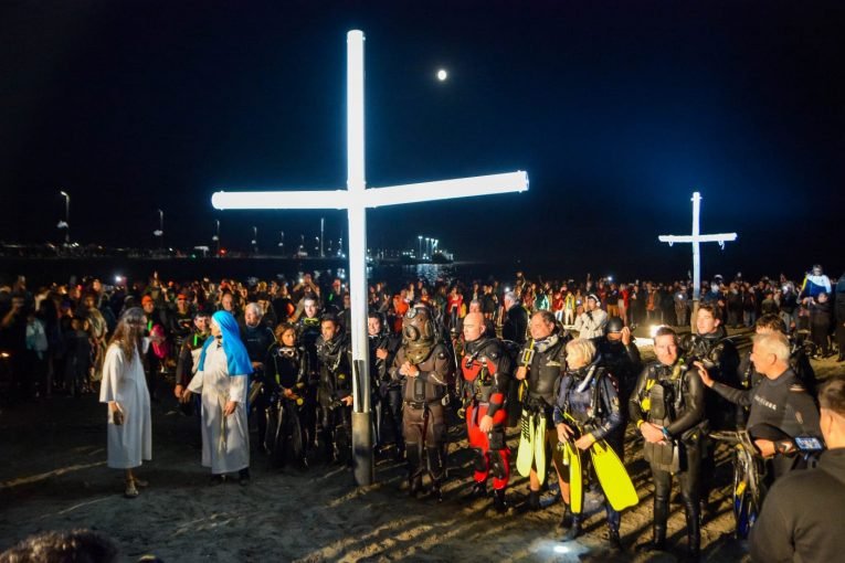 El viernes 15 de abril se realizó en Puerto Madryn la XVIII edición del Vía Crucis Submarino, con una multitud que acompañó a este evento único en el mundo que se lleva a cabo cada año en las aguas del Golfo Nuevo.